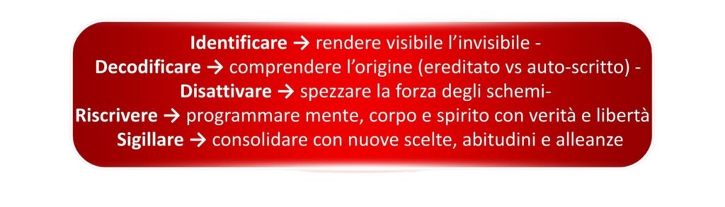 Guidare le donne a riscrivere il Codice dell’Amore, allineando mente, corpo e spirito per superare eredità emotive e trasformare ciò che il dolore ha scritto — con impatto su identità, autostima, futuro, relazioni e carriera.
