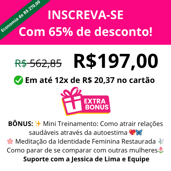 Eu sou Jessica de Lima, criadora do Método Código do Amor — um método que está transformando a vida de mulheres em todo o mundo, ajudando-as a reescrever sua história de amor. 💫